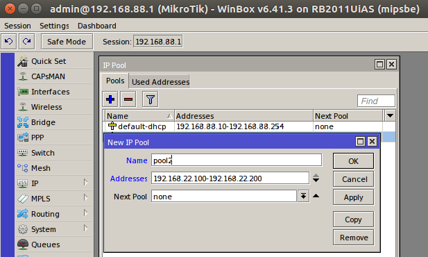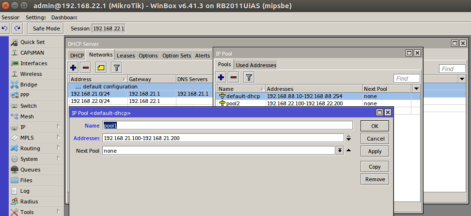 és a default poolt-t nevezzük át pool1-re és módosítsuk a tartományt