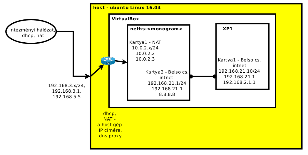 | Szükséges eszközök és programok: | Oracle VirtualBox futtatására alkalmas számítógép (>= 4 G RAM) és operációs rendszer, Linux telepítő ISO állomány, Internet kapcsolat |