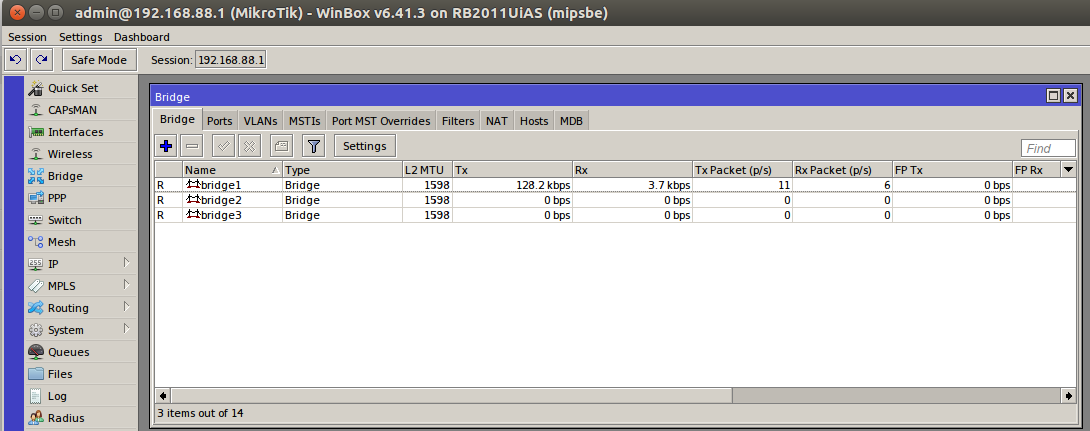 A bridge-local nevű hidat nevezze át bridge1-re. Hozzon létre még két hidat bridge2 és bridge3 néven.